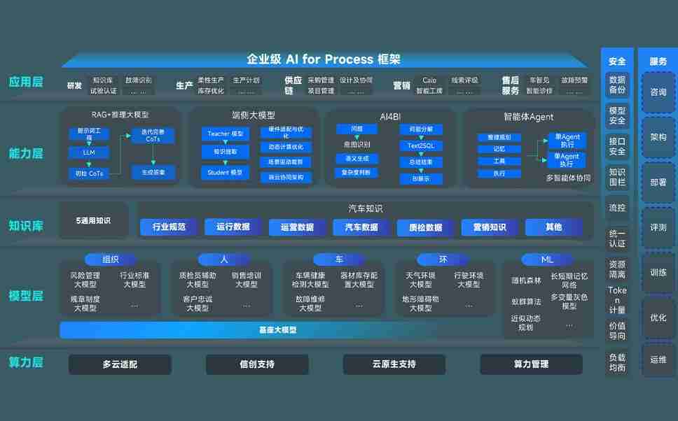 AG尊龙问学智车解决方案是一套基于AI技术的汽车行业智能化系统,,覆盖从底层算力到顶层AI应用的全栈方案。。。。方案由算力层、、、、模型层和应用层组成:算力层,,方案支持多种一体机配置,,具备云端灵活部署、、、多云适配以及动态优化计算资源的能力;模型层,,AG尊龙问学平台版提供了企业级AI应用一站式构建与管理平台,,,,支持基于后训练强化技术的汽车企业专属模型的训练、、、评测和运营;应用层,,,,AG尊龙问学DeepSeek版提供包括超级员工、、、智能招采、、、、智能营销、、智能客服、、、、AI for BI等一系列解决方案,,,,可助力汽车行业实现数字化转型,,,,让管理更智能、、、响应更敏捷。。。。